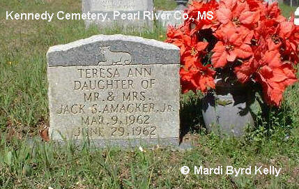 Teresa Ann Amacker - 9 Mar 1962 - 29 Jun 1962 (Masonic Emblem)