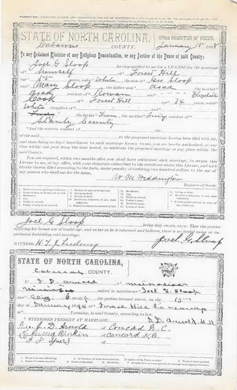 | Cook, Elizabeth - Sloop, Joel Jan 15, 1898 |