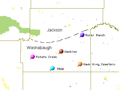 Because of the close proximity of the cemeteries in the Wanblee and Potato Creek areas, clicking on the map