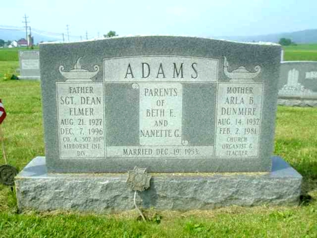 | 3 | Adams  | Dean Elmer | 08/31/1927 | 12/07/1996 | | | Father, Sgt., Co. A 502 101st Airborne Inf. Div. |