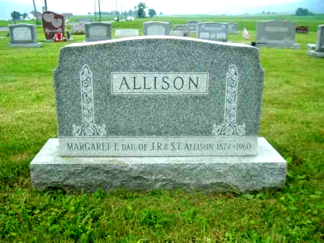 | 13 | Allison  | Margaret E. | __/__/1874 | __/__/1960 | | | d/o J.R. & S.T. Allison |