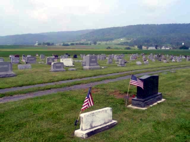 Directions from the intersection of Jacks Mountain Rd and US 522, McVeytown, PA: Turn onto Jacks Mountain Rd for 5.4 mi; Continue onto Wills Rd for 2.8 mi; Sharp left onto Front Mountain Rd for 3.2 mi; Turn right onto Waynesburg Rd for 1.4 mi; Turn left onto PA-655 S for 1.2 mi; cemetery will be on the right.