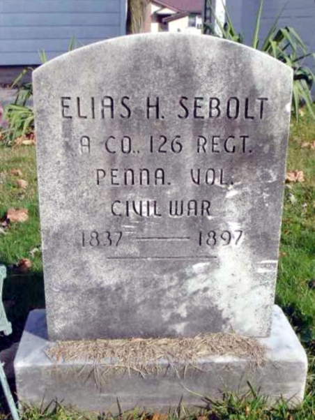 | 56 | Sebolt  | Elias H. | __/__/1837 | __/__/1897 | | | A Co. 126 Regt. Pennsylvania Volunteers, Civil War |