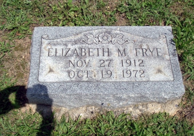 | 13 | Frye  | Elizabeth M. | 11/27/1912 | 10/19/1972 | | | d/o Harvey and Mary Ann |