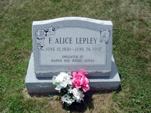 | 21 | Lepley  | F. Alice | 06/15/1930 | 06/29/2007 | | | d/o Homer and Mabel |