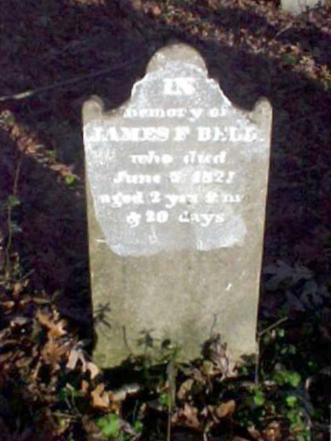 | 2 | Bell  | James F. | __/__/__ | 06/03/1821 | | | s/o John & Mary Sigler Bell, 2y 6m 20d |