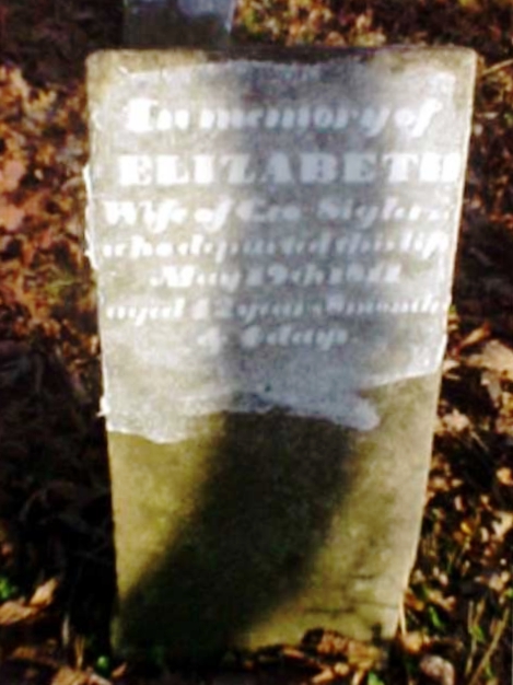 | 4 | Sigler  | Elizabeth Bunn | __/__/__ | 05/09/1811 | | | w/o George Sigler, 42y 8m 4d |