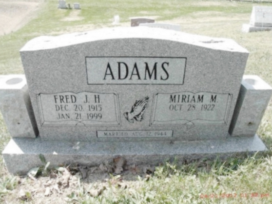 | 2 | Adams  | Miriam M. | 10/28/1922 | 11/26/2012 | | | w/o Fred JH, married Aug 12 1944 |