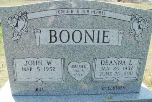 | 10 | Boonie  | Deanna L. McCloskey | 01/20/1937 | 06/20/2011 | | | w/o John W, married Nov 5 1994 |