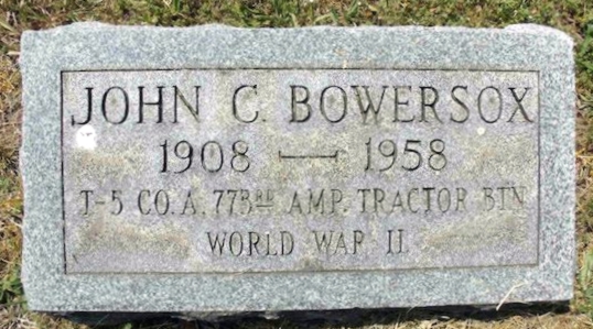 | 16 | Bowersox  | John C. | __/__/1908 | __/__/1958 | | | T-5, Co A 773rd Amp Tractor BTN, WW II |