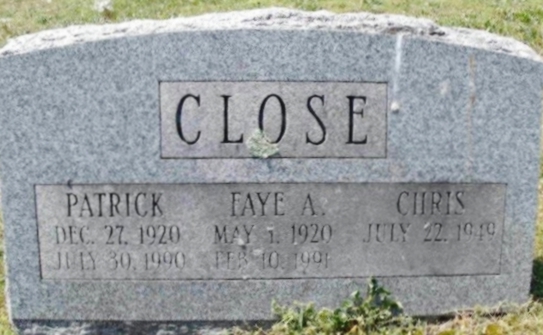 | 20 | Close  | Faye A. | 05/01/1920 | 02/10/1991 | | | |