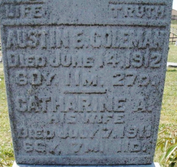 | 23 | Coleman  | Catherine A. | __/__/__ | 07/07/1911 | | | w/o Austin, 66y 7m 11d |