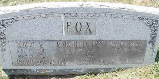 | 65 | Fox  | Margretta Erb | 06/17/1892 | 08/07/1968 | | | w/o RW |