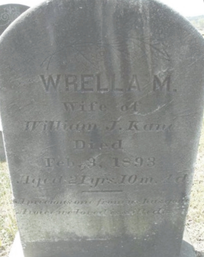 | 96 | Kane  | Wrella M. | __/__/__ | 03/03/1893 | | | w/o Wm, 21y 10m 4d |