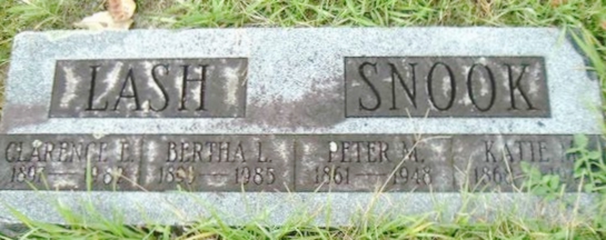 | 141 | Lash  | Bertha L. Snook | __/__/1893 | __/__/1985 | | | w/o Clarence E |