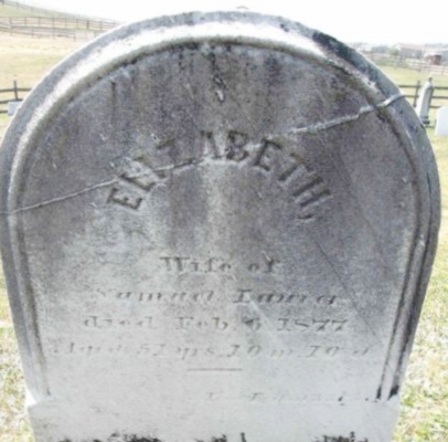 | 159 | Lawver  | Elizabeth | __/__/__ | 02/06/1877 | | | w/o Samuel, 51y 10m 10d |
