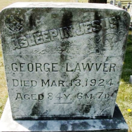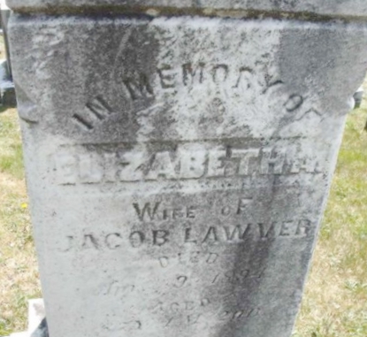 | 156 | Lawver  | Christiana | __/__/__ | 11/19/1888 | | | w/o Jacob, 68y 2m 8d |