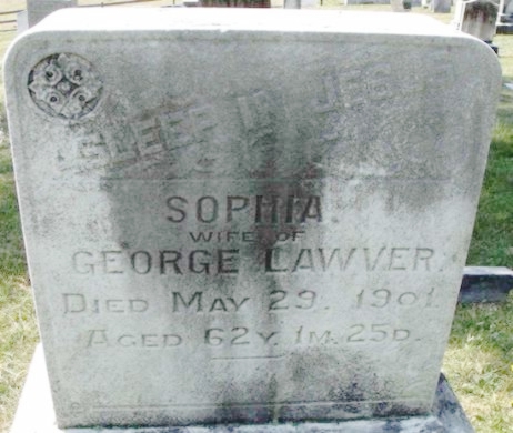 | 185 | Lawver  | Sophia | __/__/__ | 05/29/1901 | | | w/o Geo, 62y 1m 25d |