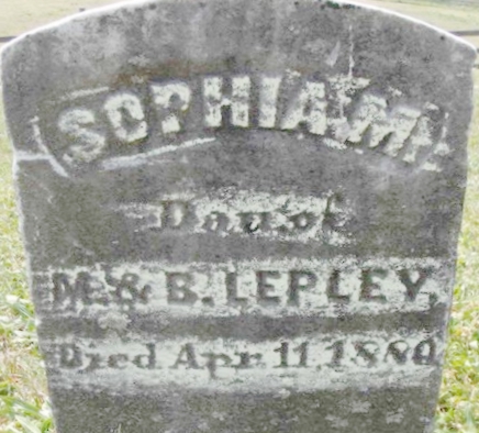 | 186 | Lepley  | Sophia M. | __/__/__ | 04/11/1880 | | | d/o M & B, 5y 1m 2d |
