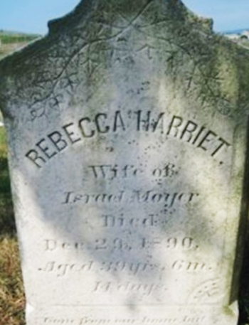 | 191 | Moyer  | Rebecca Harriet | __/__/__ | 12/29/1890 | | | w/o Israel, 39y 6m 14d |