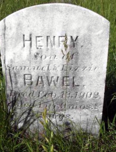 | 3 | Bawel  | Henry | __/__/__ | 02/13/1902 | | | s/o Samuel and Lizzie Bawel, 1y 7m 19d |