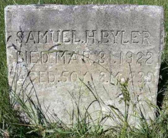 | 7 | Byler  | Infant | __/__/__ | __/__/1900 | | | 15d twin child of Samuel H and Lydia M |