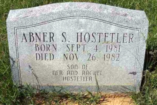 | 20 | Hostetler  | Abner S. | 09/04/1981 | 11/26/1982 | | | s/o Ner and Rachel |