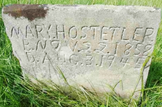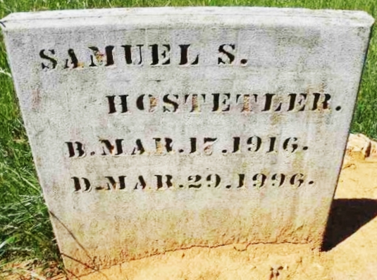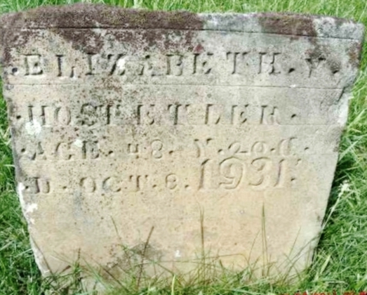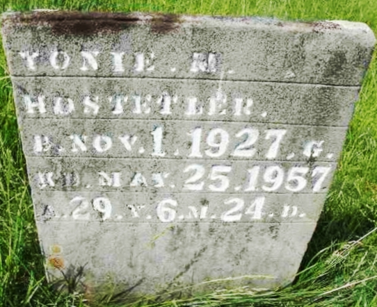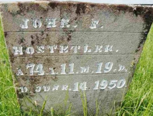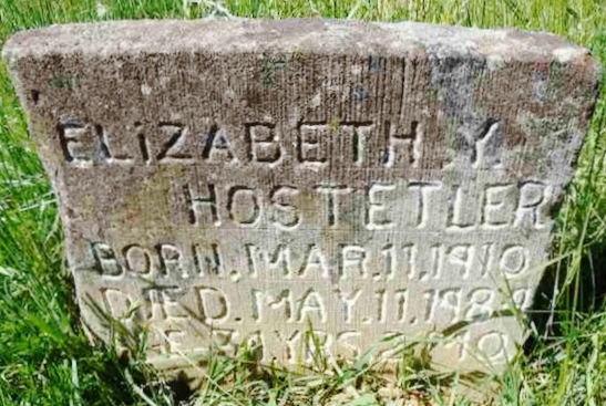 | 103 | Hostetler  | Rachel Y. | __/__/__ | 08/17/1965 | | | w/o Emanuel A., 53y 2m 23d |