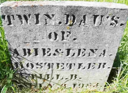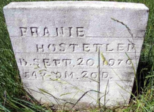 | 25 | Hostetler  | Catharine | __/__/__ | 01/27/1873 | | | d/o D & ?, 22y 3m |