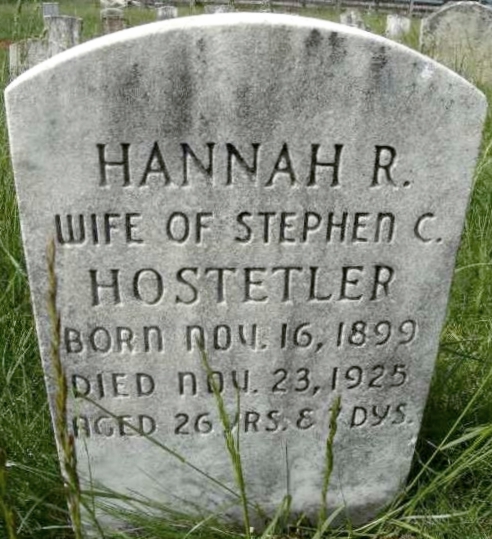 | 52 | Hostetler  | Hannah R. | 11/16/1899 | 11/23/1925 | | | w/o Stephen |