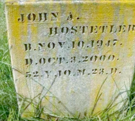 | 71 | Hostetler  | John Y. | 04/02/1932 | 03/16/1994 | | | s/o Jonas A and Rhoda Z. |