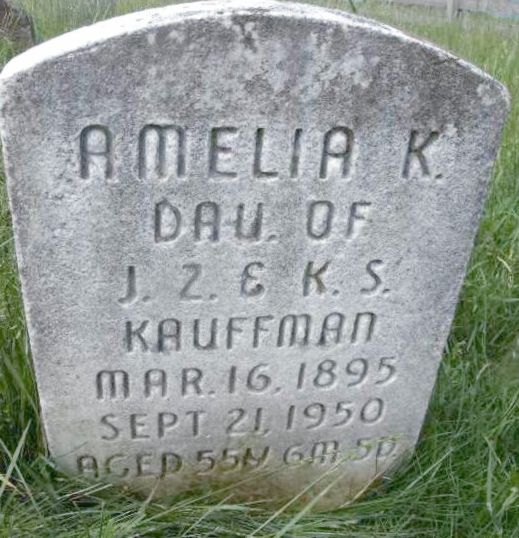 | 121 | Kauffman  | Amelia K. | 03/16/1895 | 03/21/1950 | | | d/o JZ and KS |