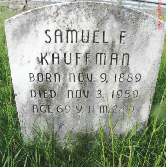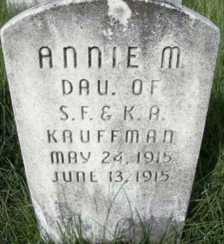 | 122 | Kauffman  | Annie M. | 05/24/1915 | 06/13/1915 | | | d/o SF and KA |