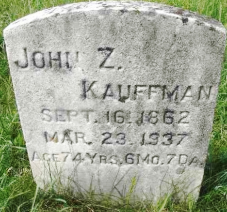 | 132 | Kauffman  | Katie S. | 05/23/1861 | 03/23/1919 | | | w/o JZ |