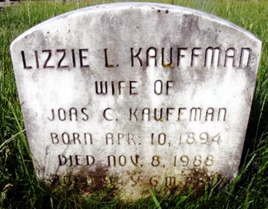 | 134 | Kauffman  | Lizzie L. | 04/10/1894 | 11/08/1988 | | | w/o Joas C. |