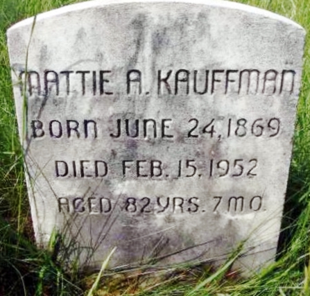 | 139 | Kauffman  | Mattie A. | 06/24/1869 | 02/15/1952 | | | |