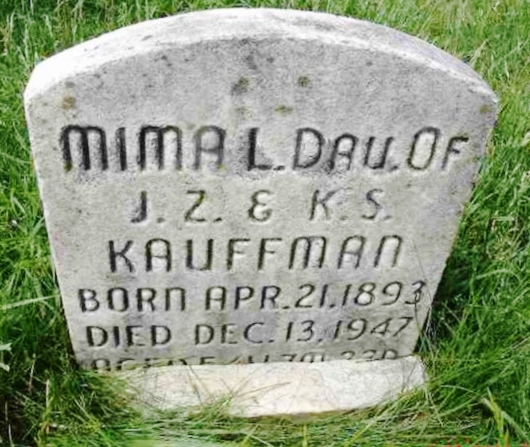 | 140 | Kauffman  | Mima L. | 04/21/1893 | 12/13/1947 | | | d/o JZ and KS |