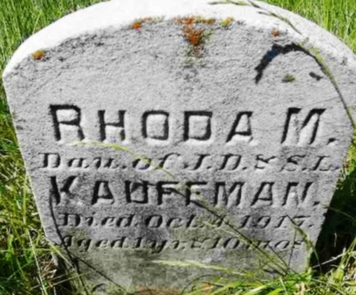 | 141 | Kauffman  | Rhoda M. | __/__/__ | 10/04/1917 | | | d/o JD and SL, 1y 10m |