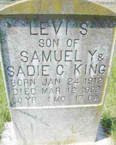 | 158 | King  | Levi S. | 01/24/1912 | 03/12/1992 | | | s/o Samuel Y and Sadie C. |