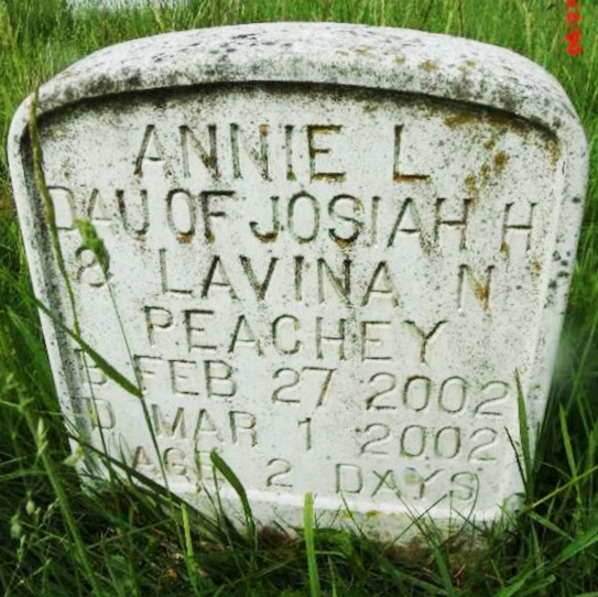 | 173 | Peachey  | Annie L. | 02/27/2002 | 03/01/2002 | | | d/o Josiah H and Lavina N. |