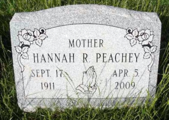 | 177 | Peachey  | Hannah R. Kurtz | 09/17/1911 | 04/05/2009 | | | Mother |