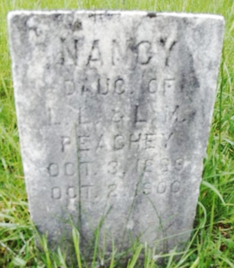 | 189 | Peachey  | Nancy | 10/03/1899 | 10/02/1900 | | | d/o LL and LM |