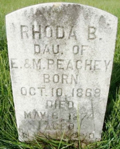 | 192 | Peachey  | Rhoda B. | 10/10/1869 | 05/06/1874 | | | d/o Eli and Miriam |