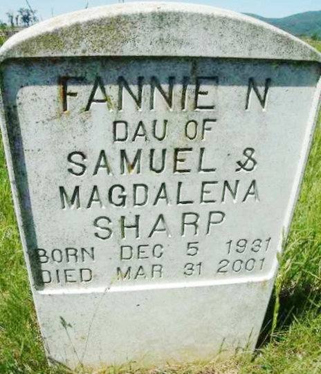 | 196 | Sharp  | Fannie N. | 12/05/1931 | 03/31/2001 | | | d/o SD and MS |