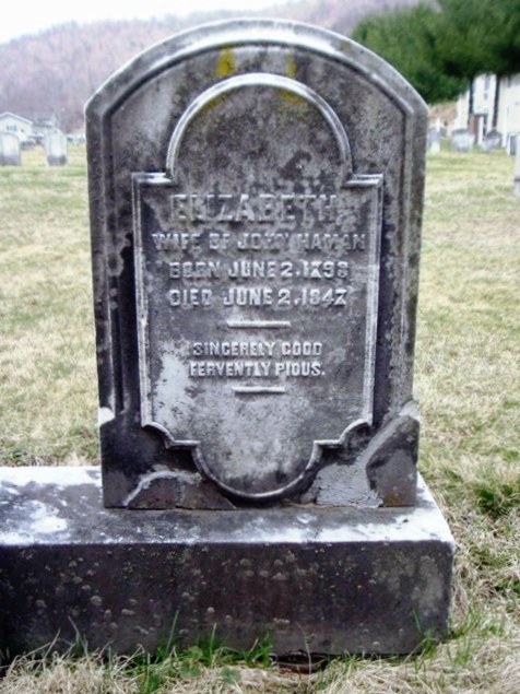 | 2 | Haman  | Elizabeth | 06/02/1798 | 06/02/1847 | | | w/o John |