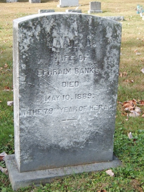 | 2 | Banks  | Jane A. | __/__/__ | 05/10/1889 | | | w/o Ephraim, 79 Years |