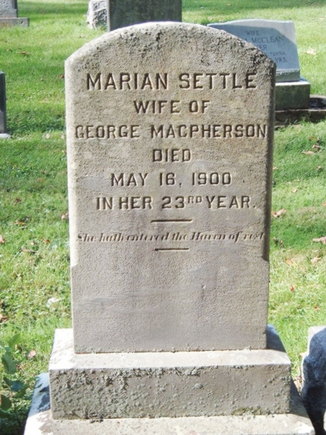 | 35 | Macpherson  | Marian Settle | __/__/__ | 05/16/1900 | | | w/o George, In Her 23rd Year |