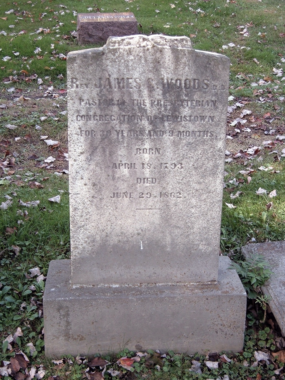 | 64 | Woods  | Rev. James S. D.D. | 04/18/1793 | 06/26/1862 | | | Pastor of the Presbyterian Congregation of Lewistown for 30 Years and 9 Months |