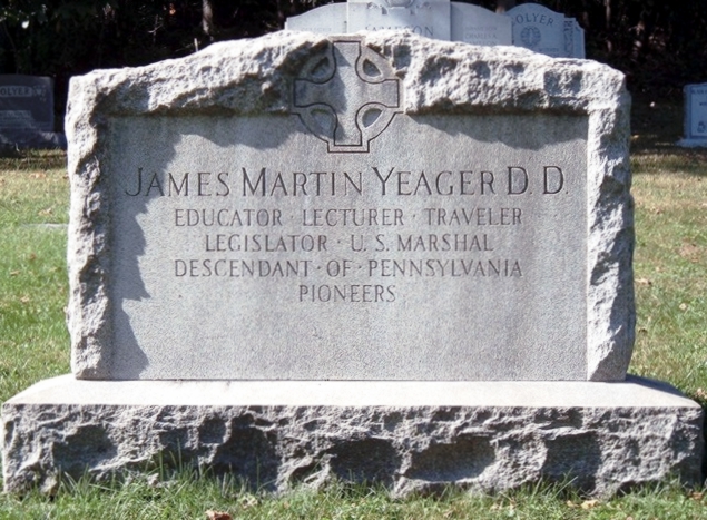 | 67 | Yeager  | James Martin D.D. | __/__/__ | __/__/__ | | | Educator, Lecturer, Traveler, Legislator, U.S. Marshal, Descendant Of Pennsylvania Pioneers |