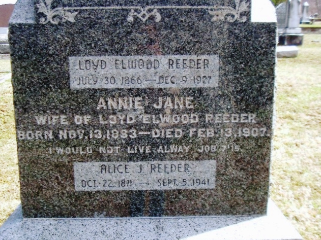 | 4 | Reeder  | Annie Jane | 11/13/1883 | 02/13/1907 | | | w/o L. E. |